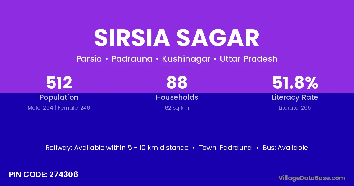 According to Census 2011 information, the village code of Sirsia Sagar village is 274306.