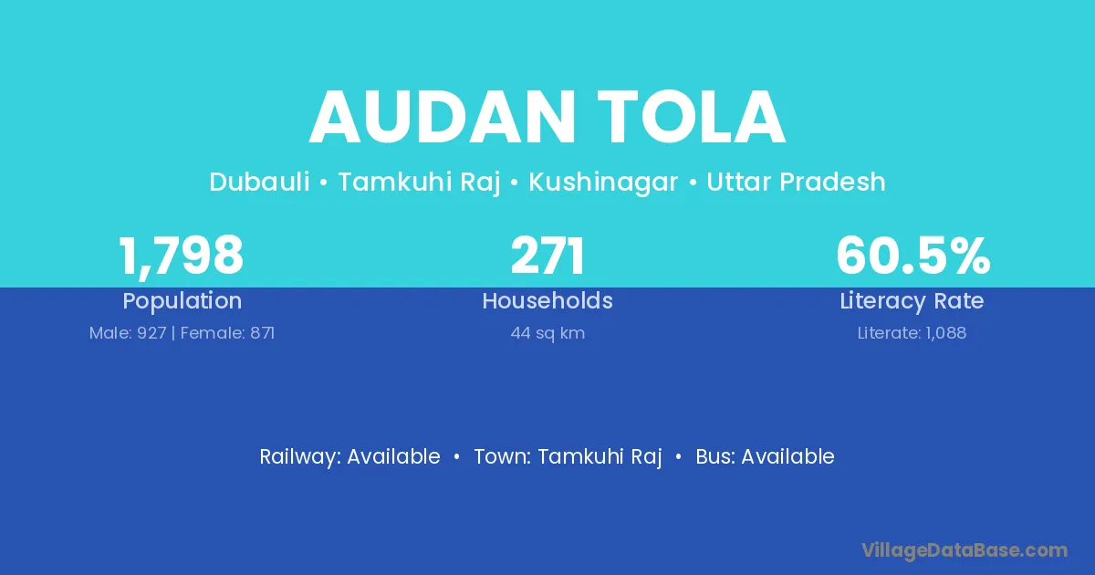 Tamkuhi Raj is the nearest town to Audan Tola village for major economic activities