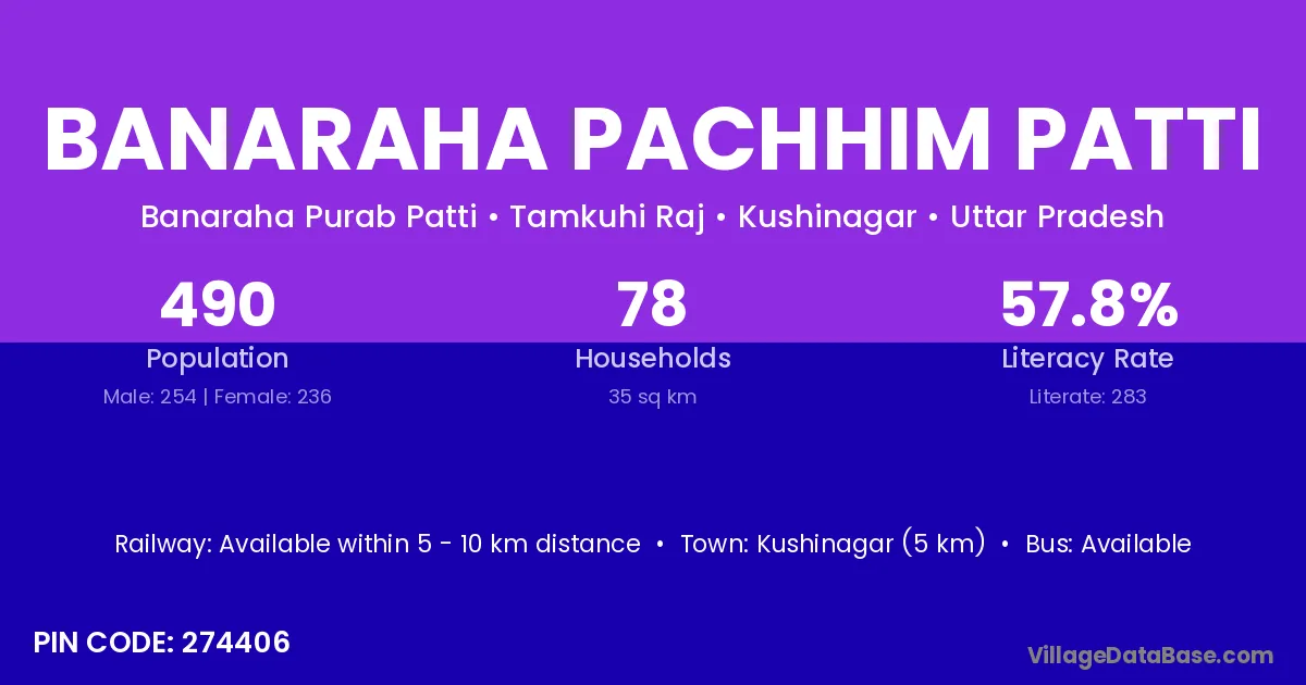 Kushinagar (5 km) is the nearest town to Banaraha Pachhim Patti village for major economic activities and is located approximately 5 km away.