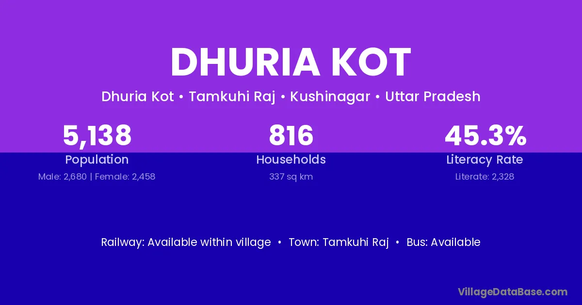 Tamkuhi Raj is the nearest town to Dhuria Kot village for major economic activities