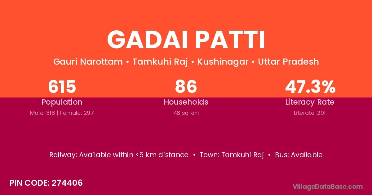 Tamkuhi Raj is the nearest town to Gadai Patti village for major economic activities