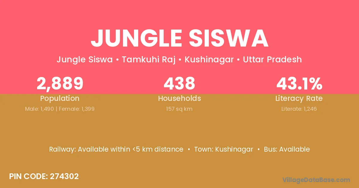 Jungle Siswa village has a total population of 2,889 people, of which 1,490 are males and 1,399 are females.