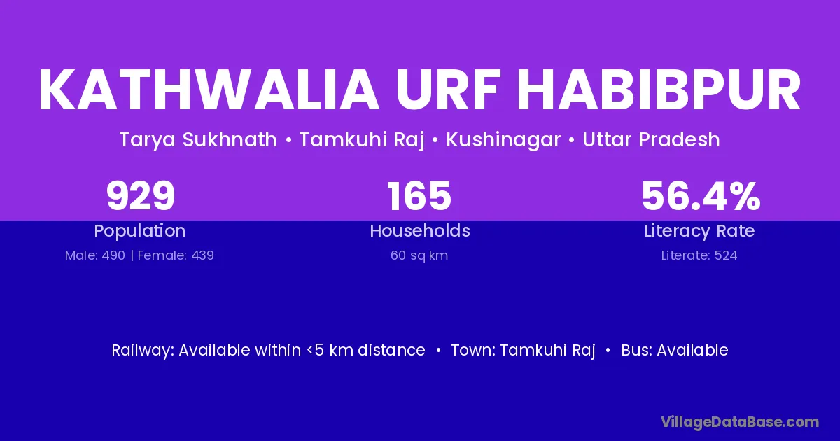 Kathwalia Urf Habibpur village has a total population of 929 people, of which 490 are males and 439 are females.