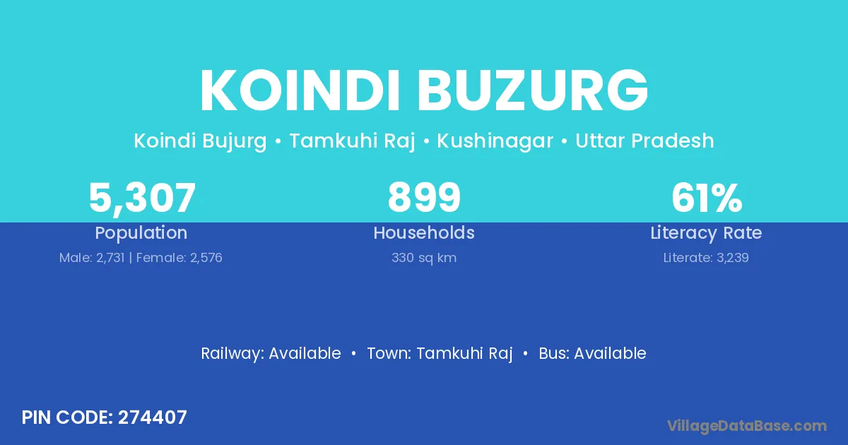 Tamkuhi Raj is the nearest town to Koindi Buzurg village for major economic activities