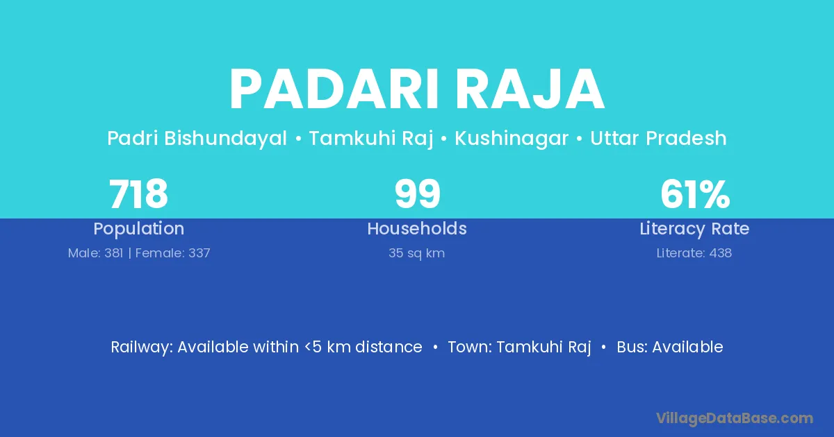 Tamkuhi Raj is the nearest town to Padari Raja village for major economic activities