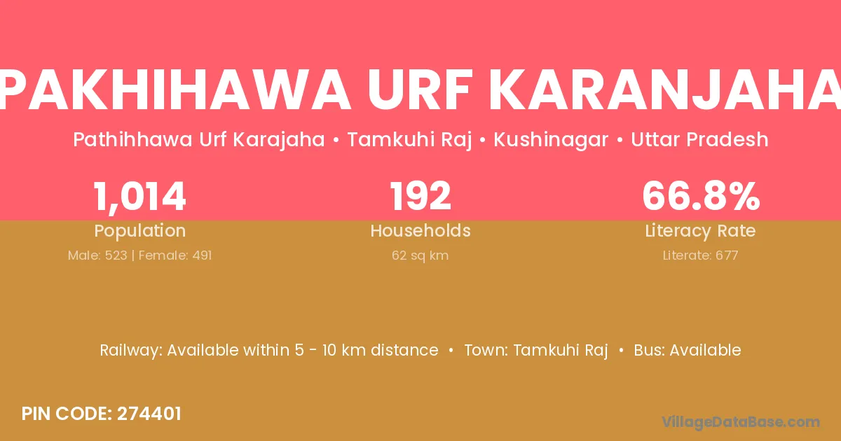 Pakhihawa Urf Karanjaha village has a total population of 1,014 people, of which 523 are males and 491 are females.