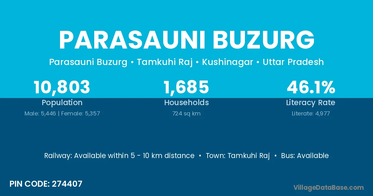 Tamkuhi Raj is the nearest town to Parasauni Buzurg village for major economic activities
