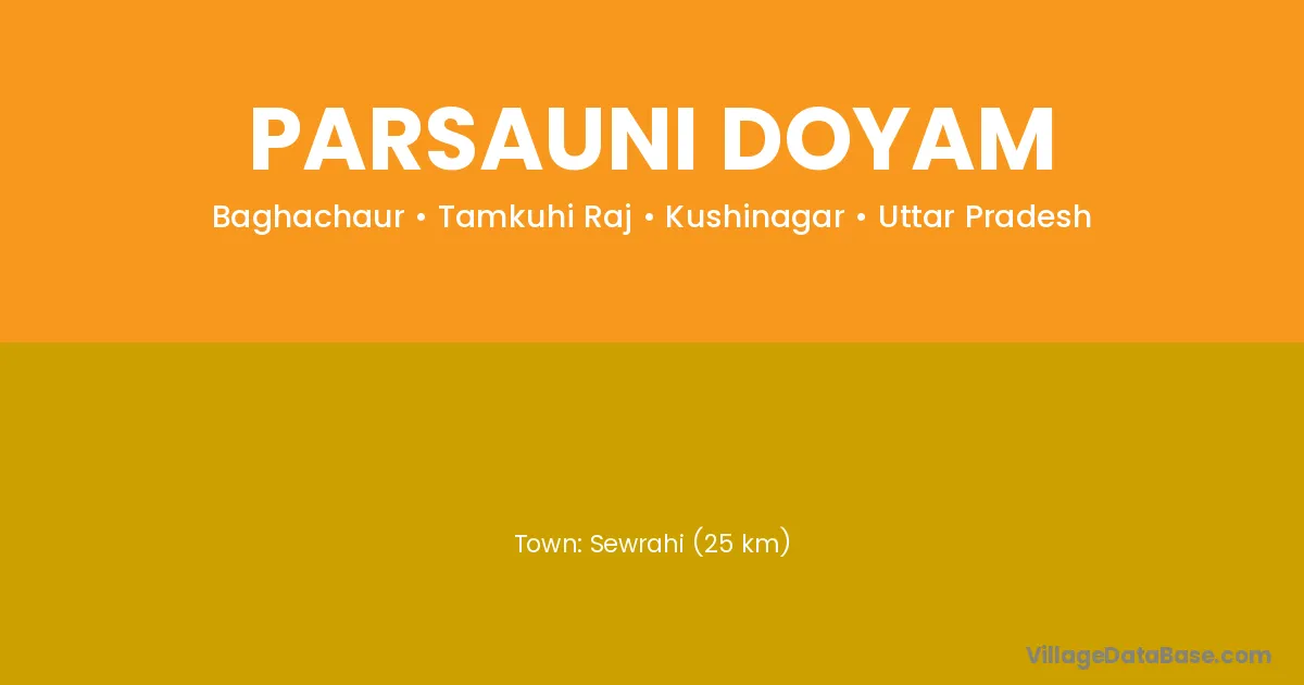 Sewrahi (25 km) is the nearest town to Parsauni Doyam village for major economic activities and is located approximately 25 km away.