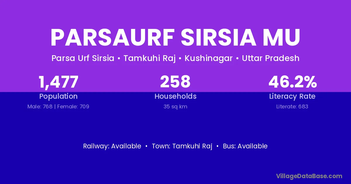 Tamkuhi Raj is the nearest town to Parsaurf Sirsia Mu village for major economic activities