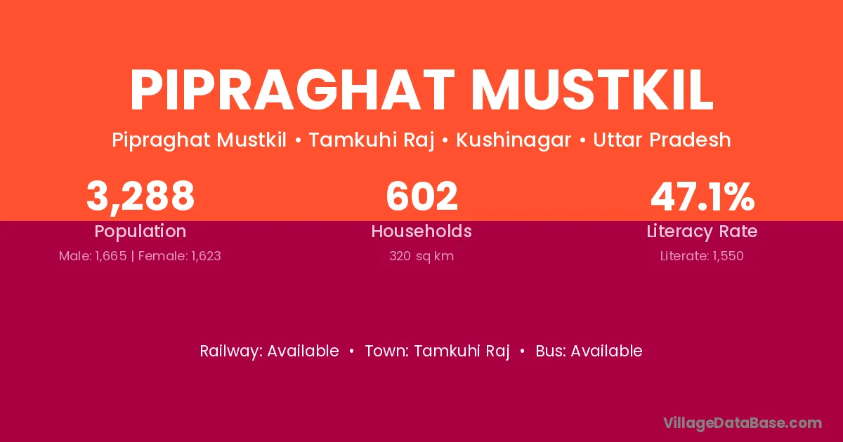 Tamkuhi Raj is the nearest town to Pipraghat Mustkil village for major economic activities