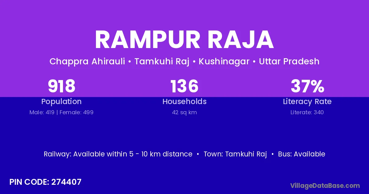 Tamkuhi Raj is the nearest town to Rampur Raja village for major economic activities