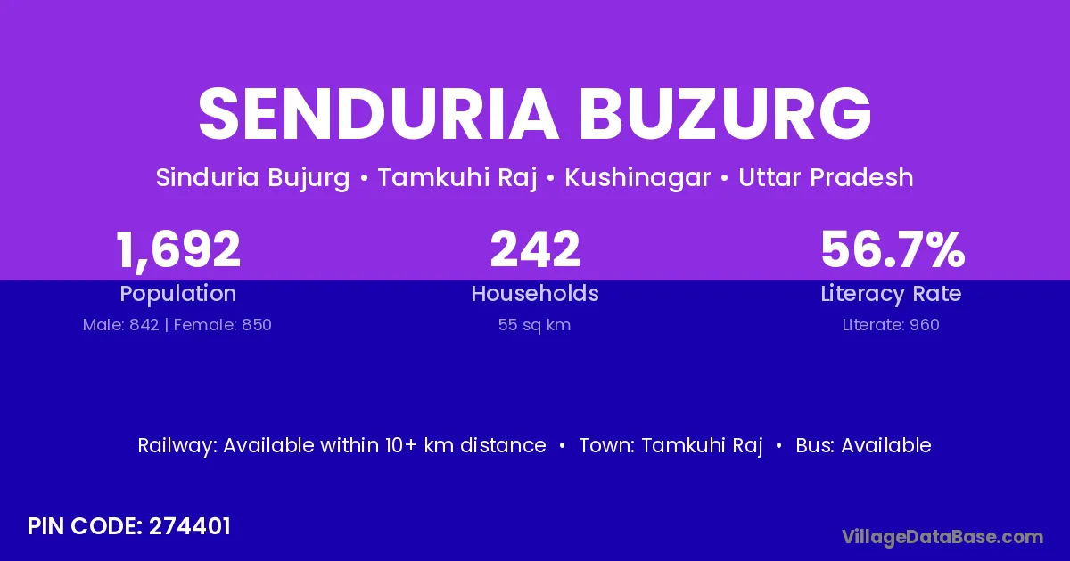 Tamkuhi Raj is the nearest town to Senduria Buzurg village for major economic activities