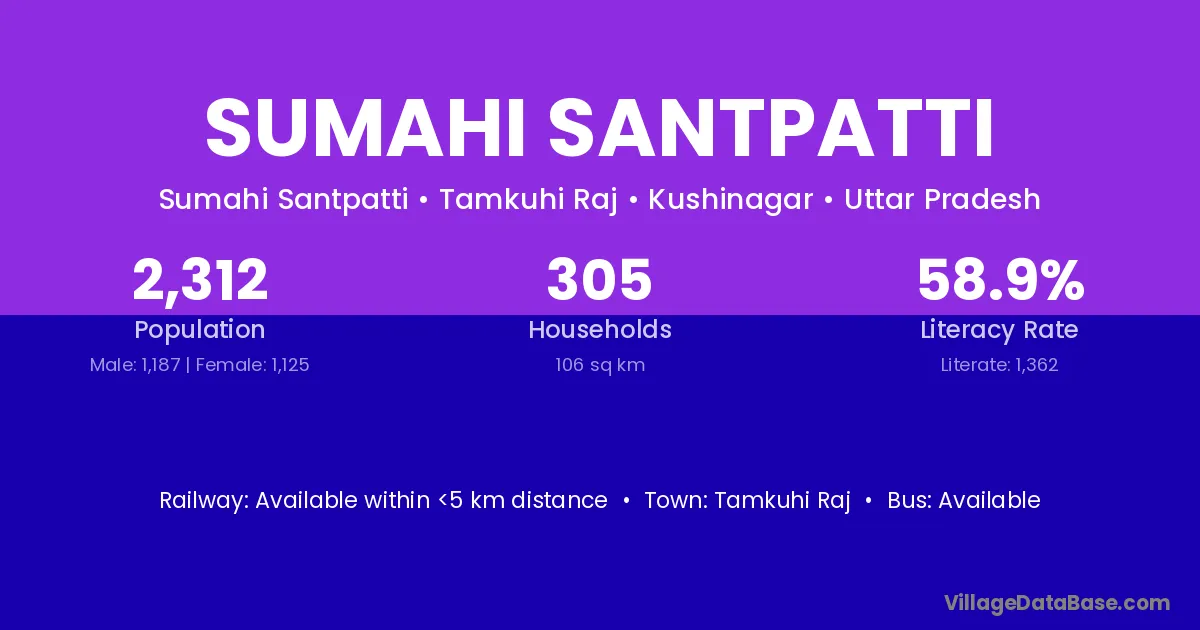 Tamkuhi Raj is the nearest town to Sumahi Santpatti village for major economic activities