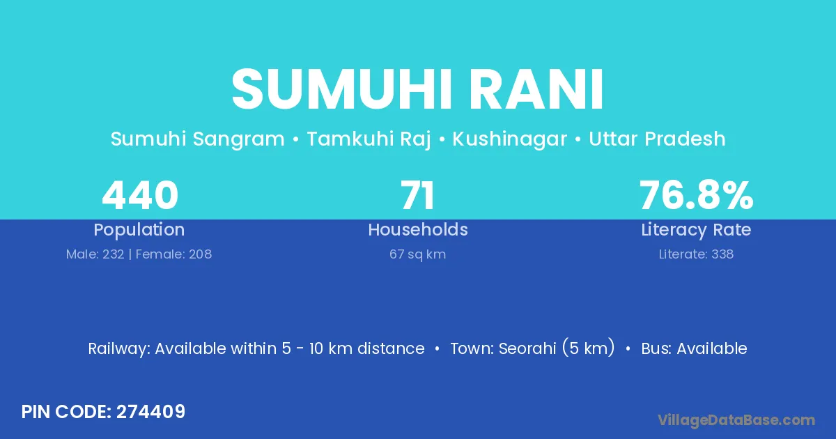 Sumuhi Rani village has a total population of 440 people, of which 232 are males and 208 are females.