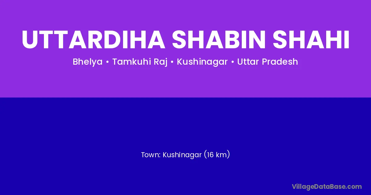 Kushinagar (16 km) is the nearest town to Uttardiha Shabin Shahi village for major economic activities and is located approximately 16 km away.