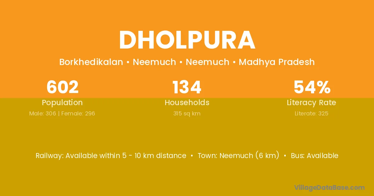 Lalitpur (24 km) is the nearest town to Dholpura village for major economic activities and is located approximately 24 km away.