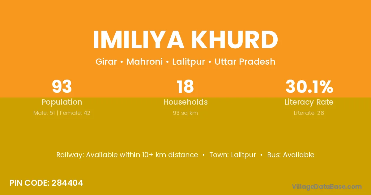 Imiliya Khurd village has a total population of 93 people, of which 51 are males and 42 are females.