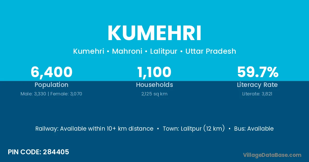 Lalitpur (12 km) is the nearest town to Kumehri village for major economic activities and is located approximately 12 km away.