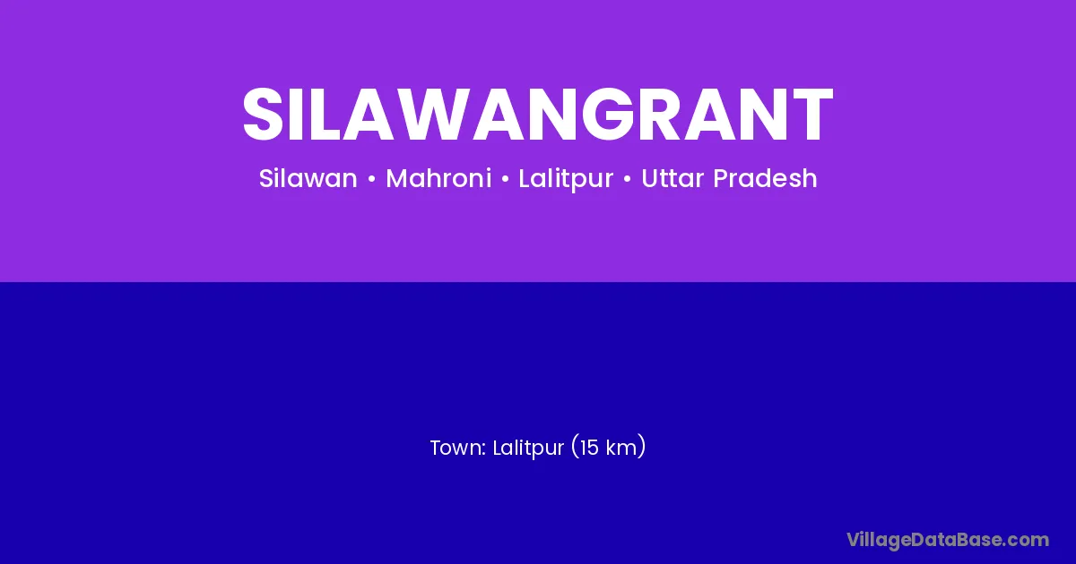 Lalitpur (15 km) is the nearest town to Silawangrant village for major economic activities and is located approximately 15 km away.