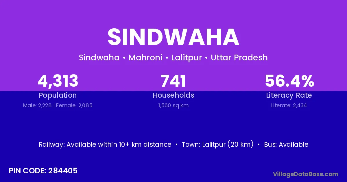 Lalitpur (20 km) is the nearest town to Sindwaha village for major economic activities and is located approximately 20 km away.