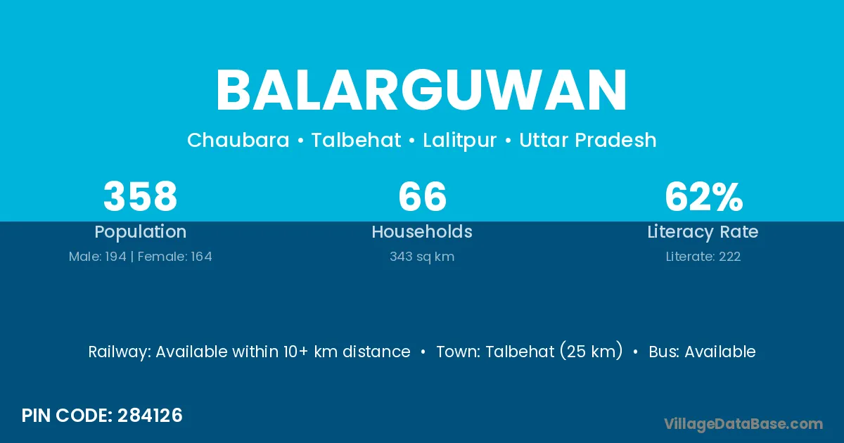 Talbehat (25 km) is the nearest town to Balarguwan village for major economic activities and is located approximately 25 km away.