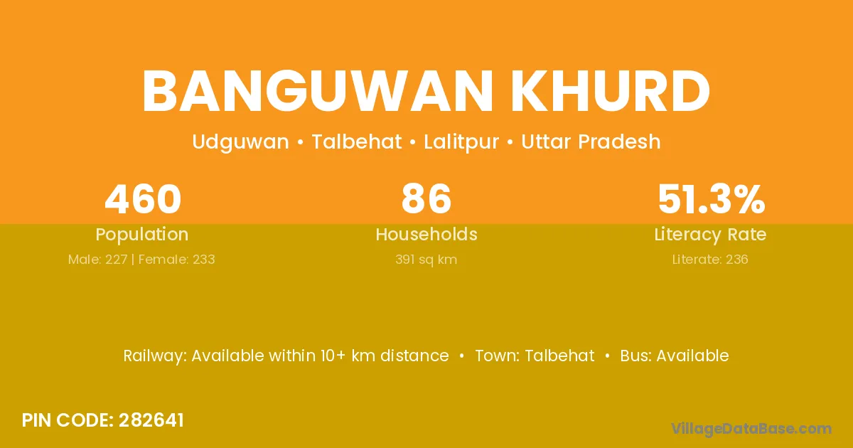 Banguwan Khurd village has a total population of 460 people, of which 227 are males and 233 are females.