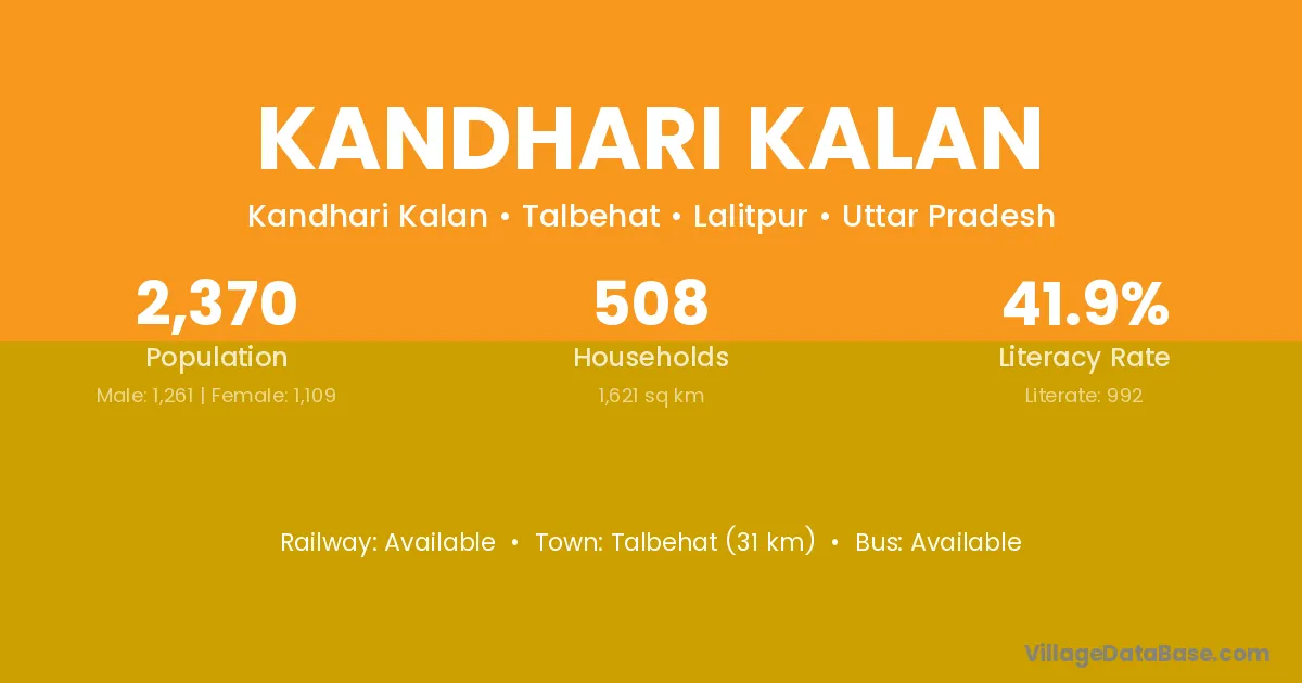 Talbehat (31 km) is the nearest town to Kandhari Kalan village for major economic activities and is located approximately 31 km away.
