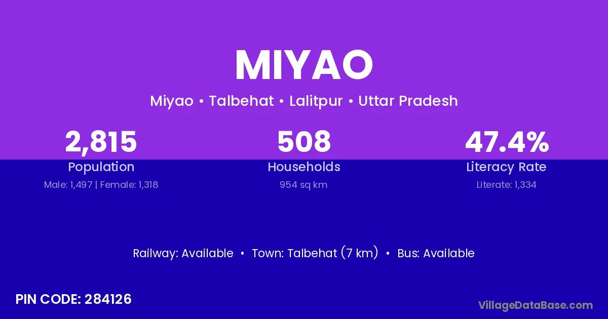 Miyao village has a total population of 2,815 people, of which 1,497 are males and 1,318 are females.