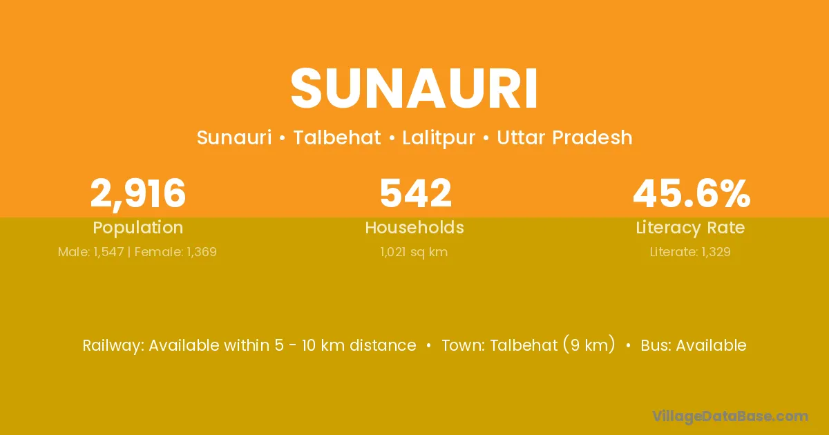 Talbehat (9 km) is the nearest town to Sunauri village for major economic activities and is located approximately 9 km away.