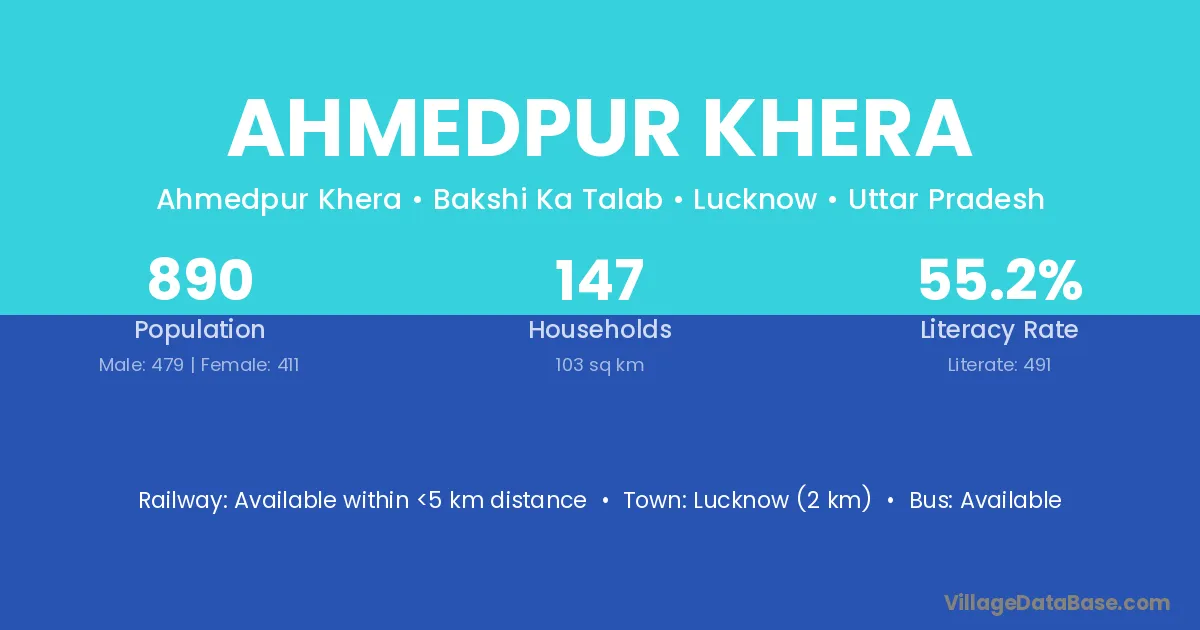 Lucknow (2 km) is the nearest town to Ahmedpur Khera village for major economic activities and is located approximately 2 km away.
