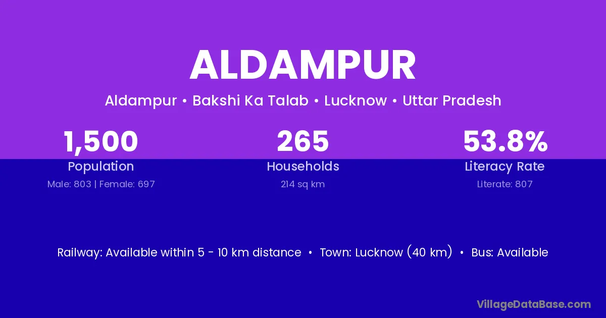 Lucknow (40 km) is the nearest town to Aldampur village for major economic activities and is located approximately 40 km away.