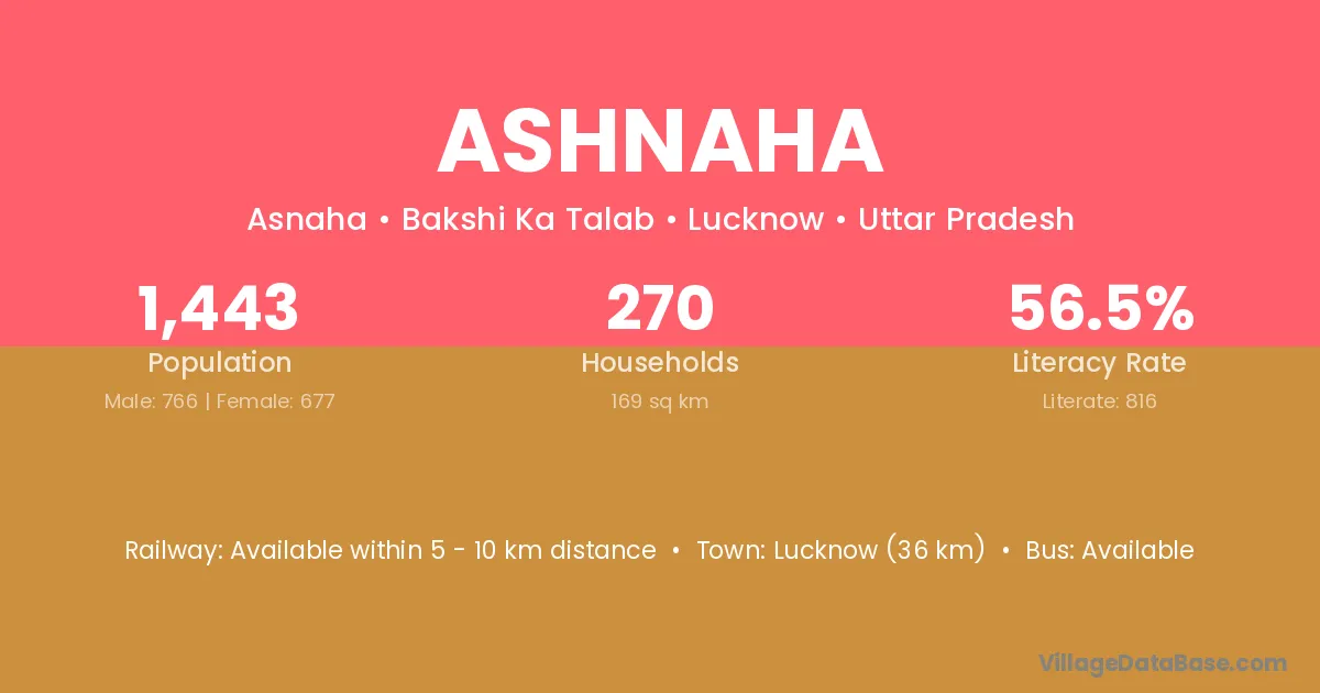Lucknow (36 km) is the nearest town to Ashnaha village for major economic activities and is located approximately 36 km away.
