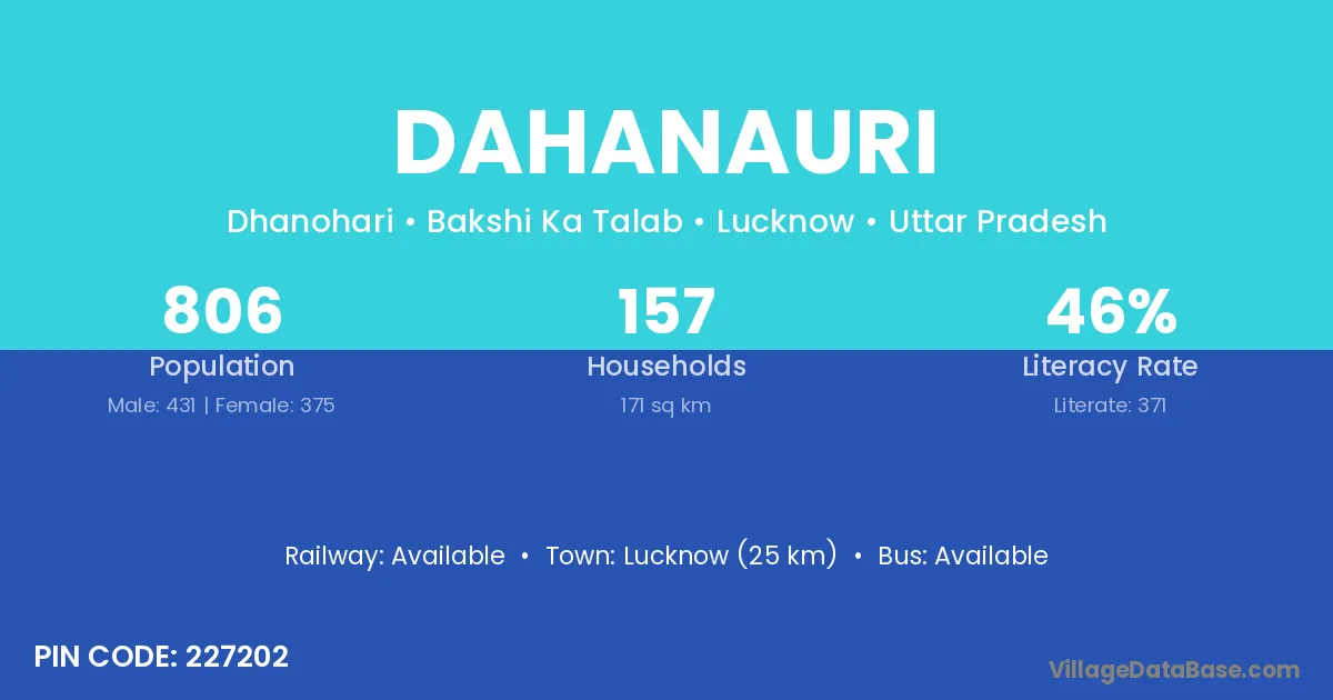 Lucknow (25 km) is the nearest town to Dahanauri village for major economic activities and is located approximately 25 km away.