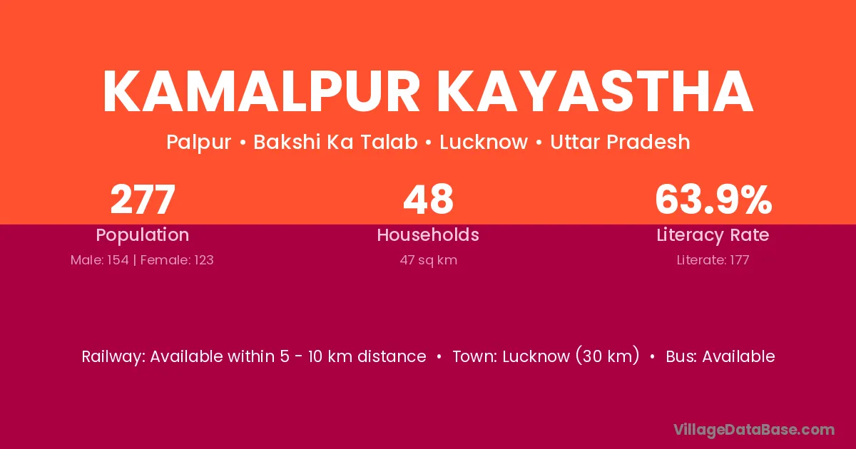Lucknow (30 km) is the nearest town to Kamalpur Kayastha village for major economic activities and is located approximately 30 km away.