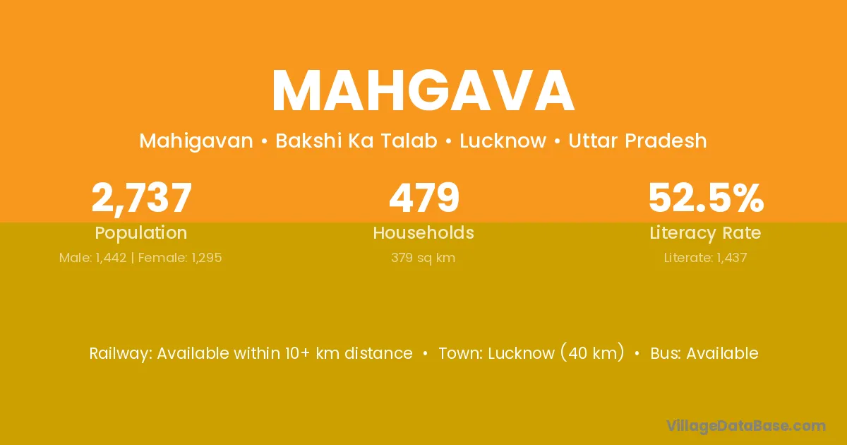 Lucknow (40 km) is the nearest town to Mahgava village for major economic activities and is located approximately 40 km away.