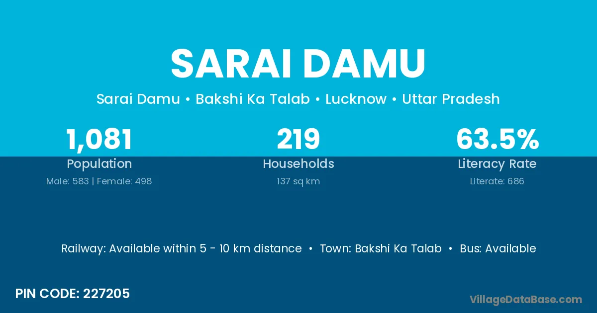 Bakshi Ka Talab is the nearest town to Sarai Damu village for major economic activities