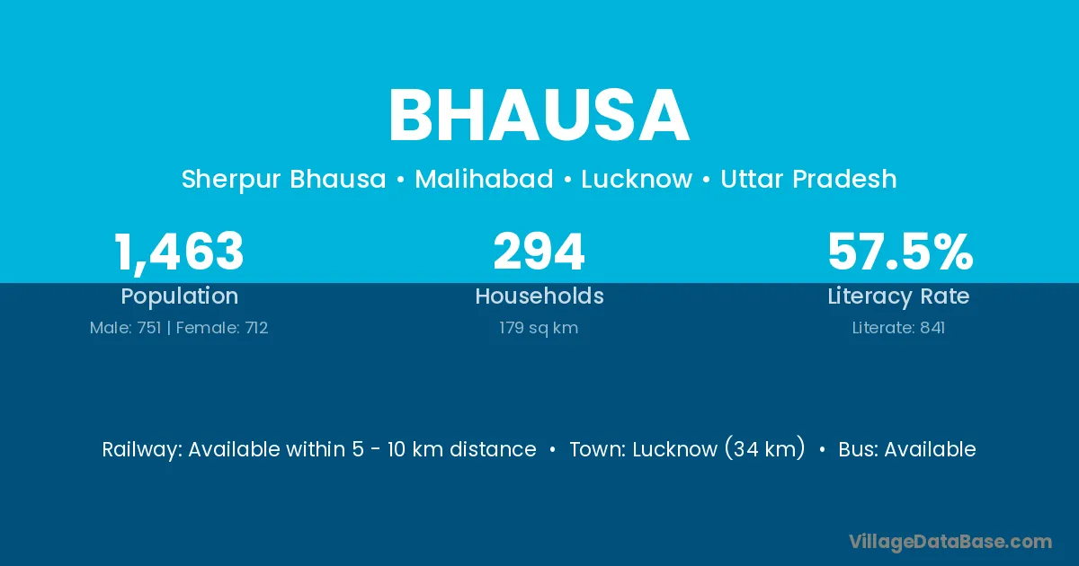 Lucknow (34 km) is the nearest town to Bhausa village for major economic activities and is located approximately 34 km away.