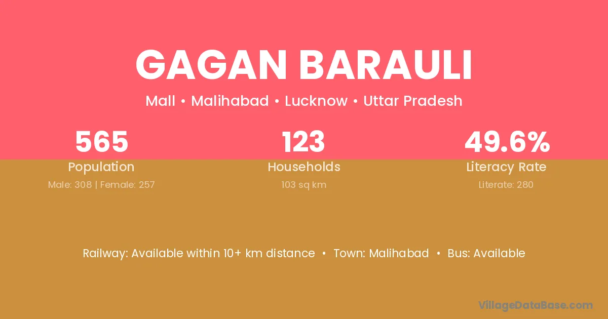 Malihabad is the nearest town to Gagan Barauli village for major economic activities