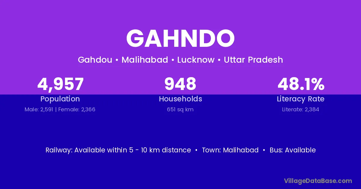 Malihabad is the nearest town to Gahndo village for major economic activities