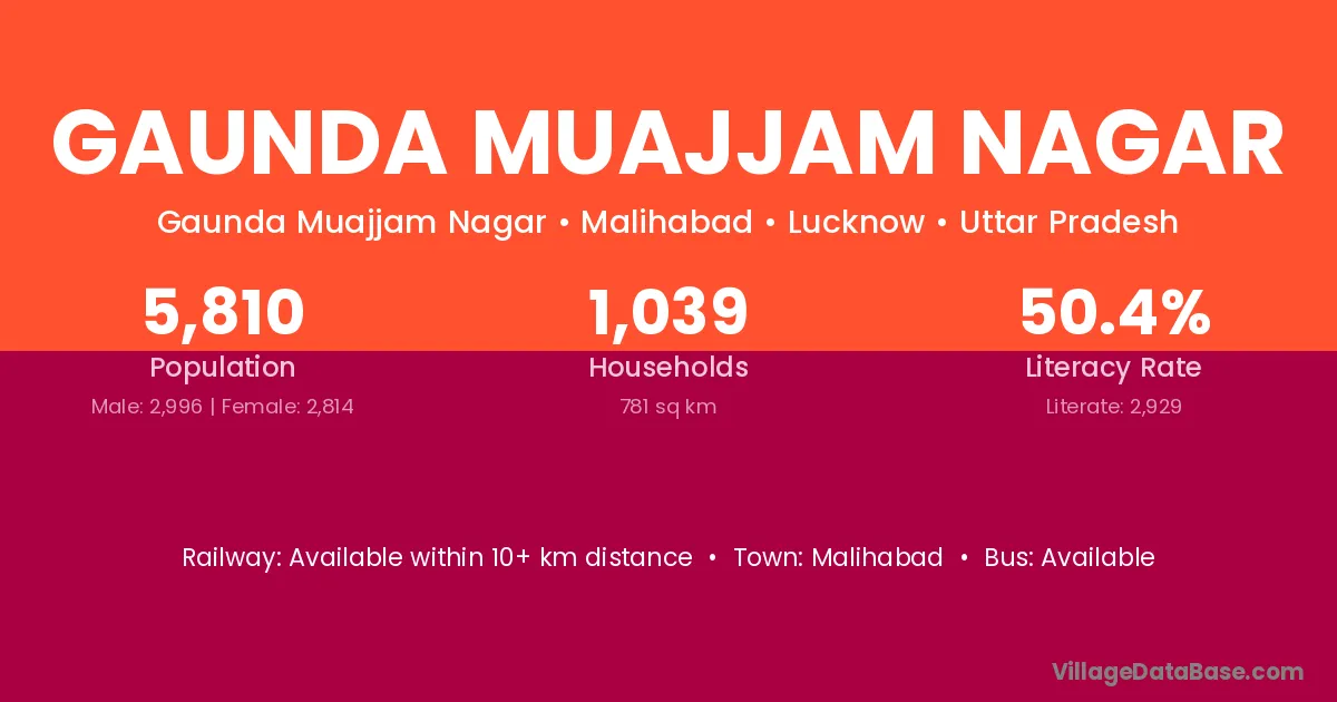 Gaunda Muajjam Nagar village has a total population of 5,810 people, of which 2,996 are males and 2,814 are females.