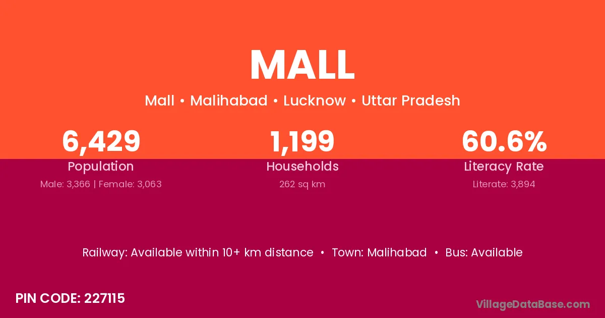 Mall village has a total population of 6,429 people, of which 3,366 are males and 3,063 are females.