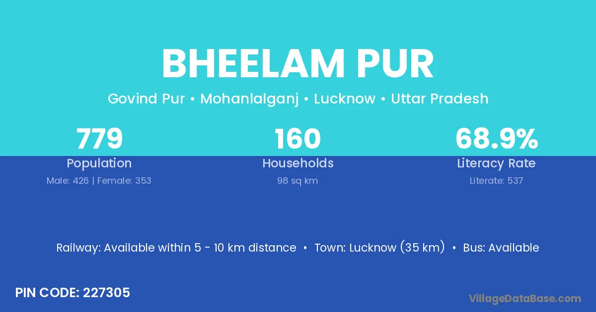 Lucknow (35 km) is the nearest town to Bheelam Pur village for major economic activities and is located approximately 35 km away.