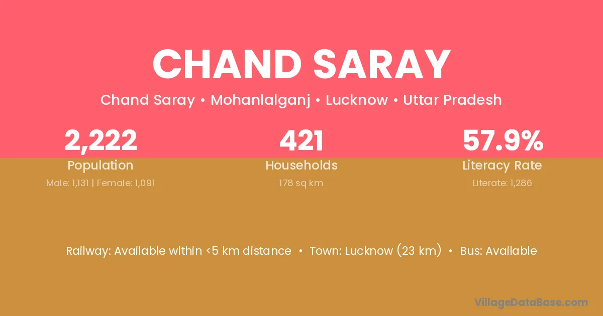 Lucknow (23 km) is the nearest town to Chand Saray village for major economic activities and is located approximately 23 km away.