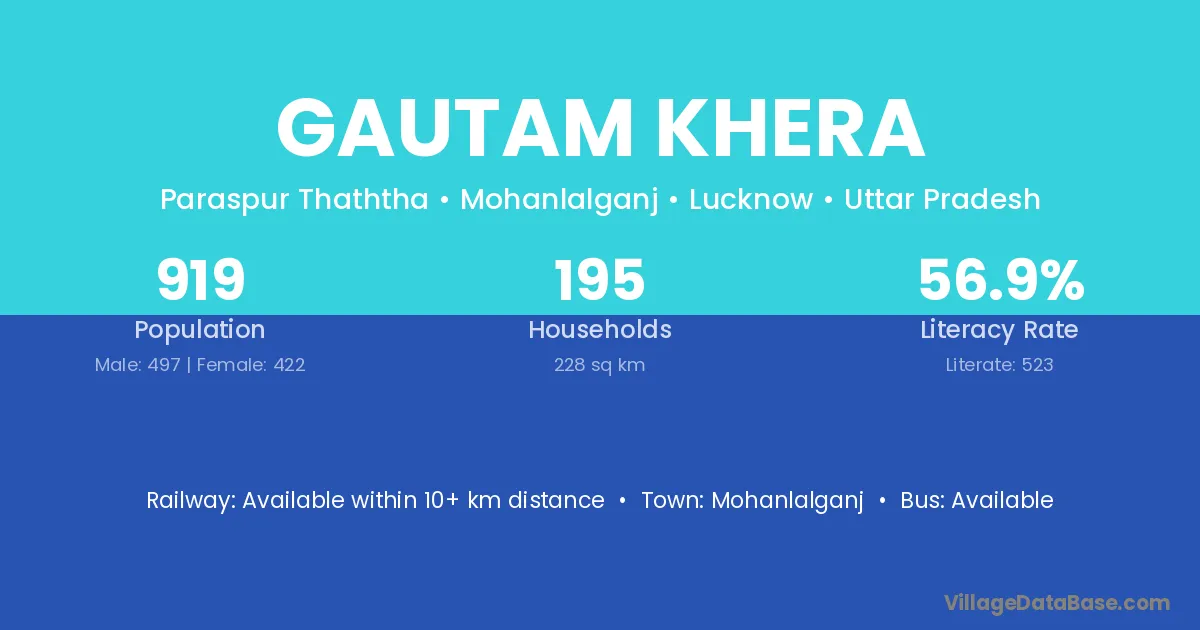 Gautam Khera village has a total population of 919 people, of which 497 are males and 422 are females.