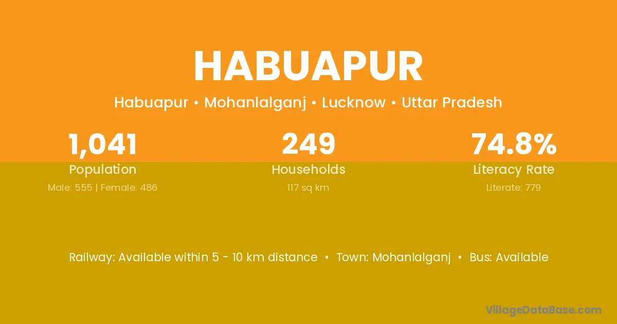 Habuapur village has a total population of 1,041 people, of which 555 are males and 486 are females.