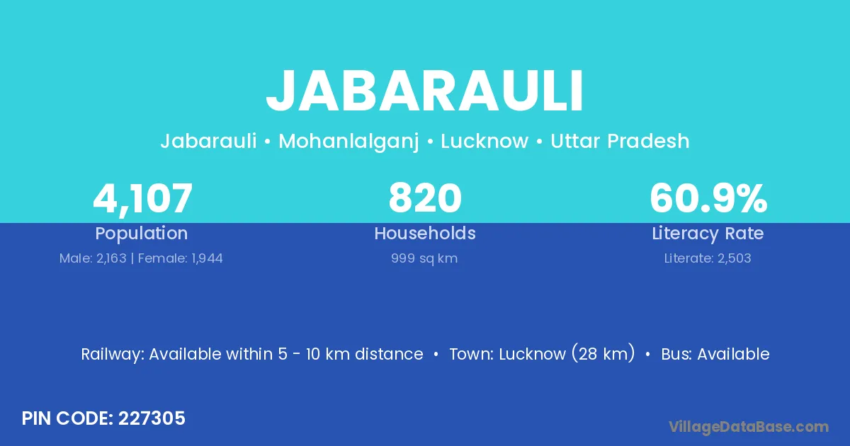 Lucknow (28 km) is the nearest town to Jabarauli village for major economic activities and is located approximately 28 km away.