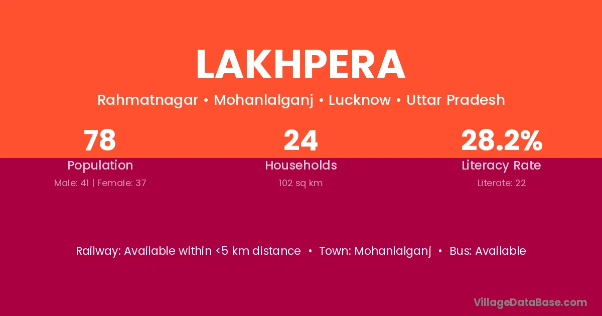 Lakhpera village has a total population of 78 people, of which 41 are males and 37 are females.
