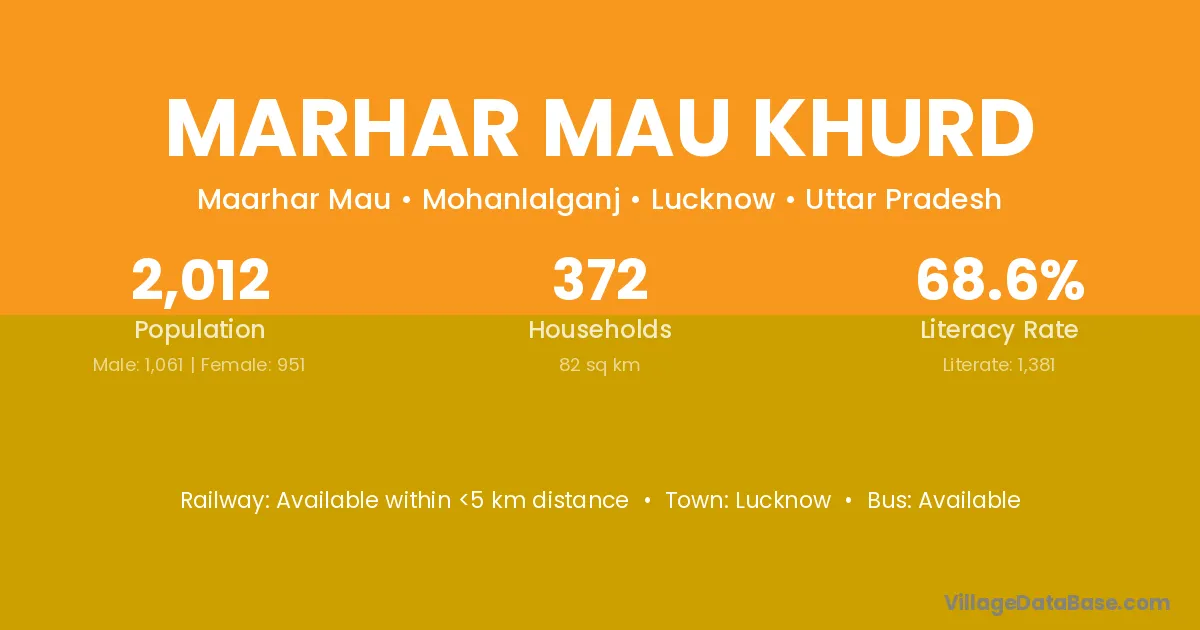 Marhar Mau Khurd village has a total population of 2,012 people, of which 1,061 are males and 951 are females.