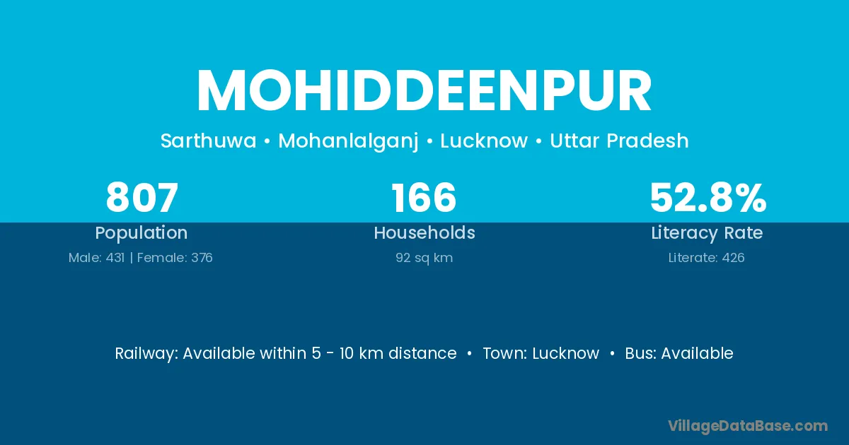 Lucknow is the nearest town to Mohiddeenpur village for major economic activities