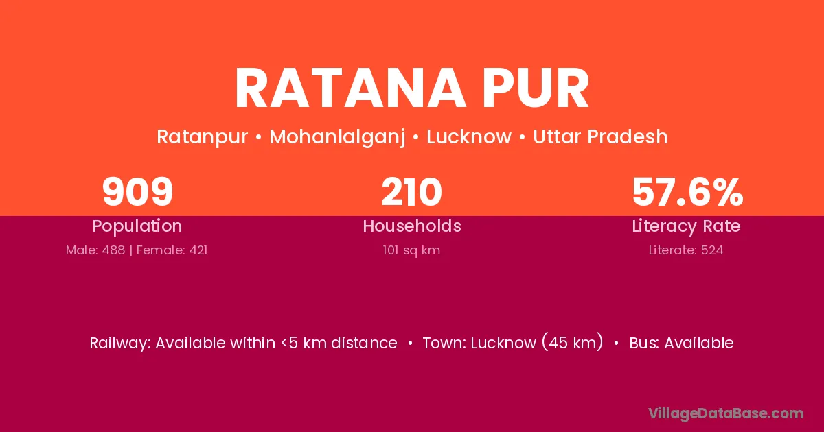 Lucknow (45 km) is the nearest town to Ratana Pur village for major economic activities and is located approximately 45 km away.